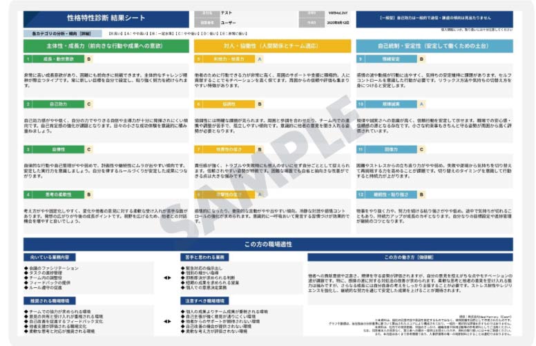 タイプの得手不得手を考慮し適材適所の配置に役立つ。